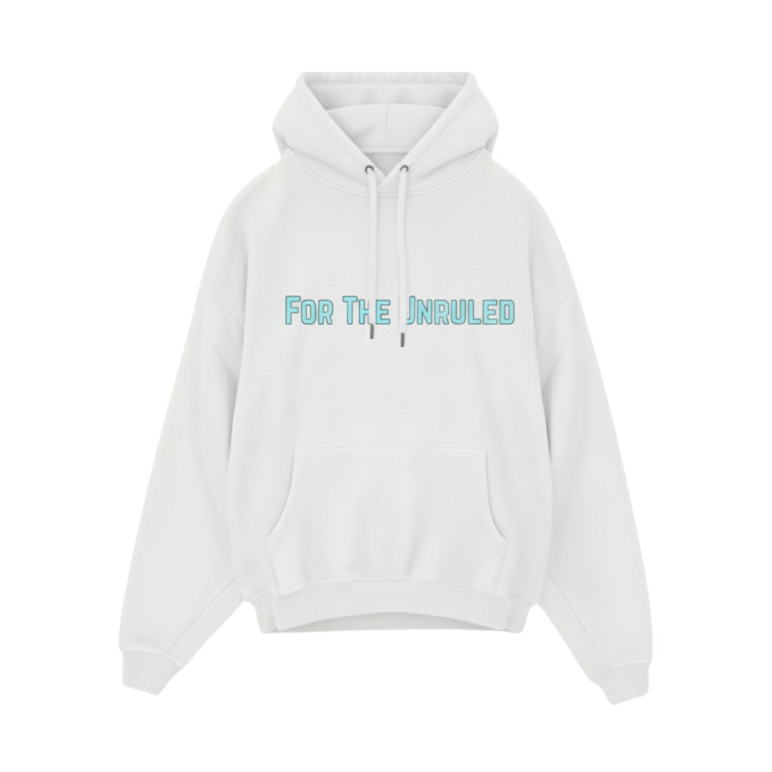 UNRULED OG HOODIE 01 — WHITE / CYAN